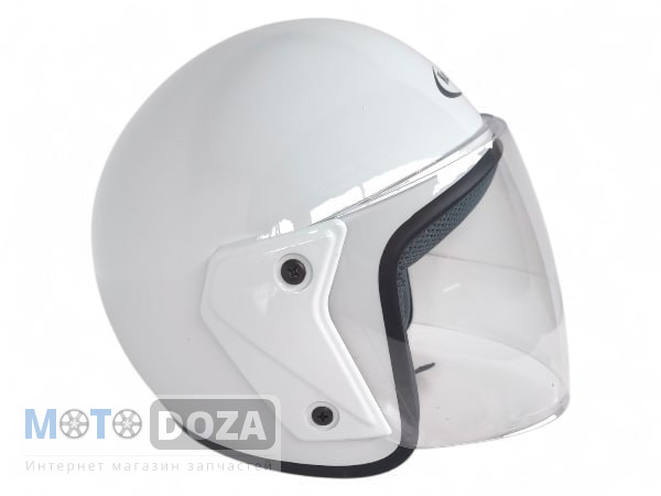 Белое стекло шлема обеспечивает отличную видимость и защиту от яркого солнечного света, позволяя водителю чувствовать себя комфортно даже в самые жаркие дни. Удобная посадка и регулируемый ремешок позволяют точно подогнать шлем под любую голову, обеспечивая максимальный комфорт во время поездок.
